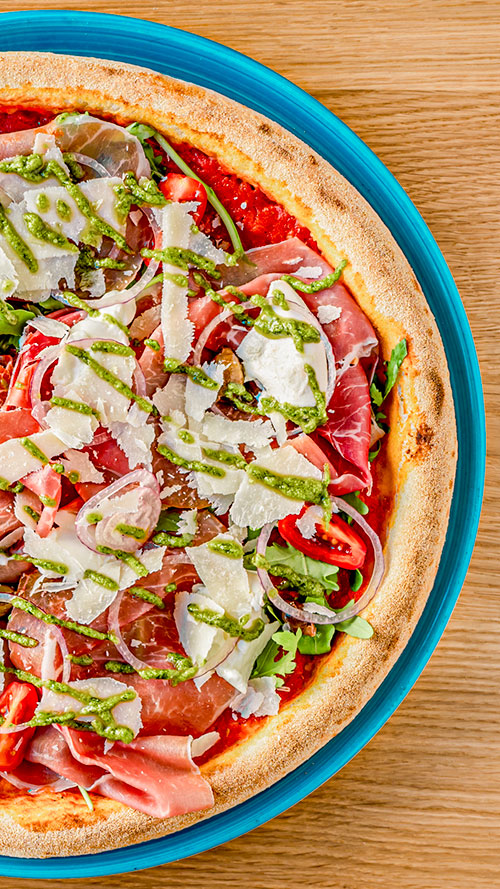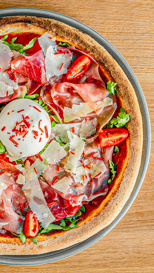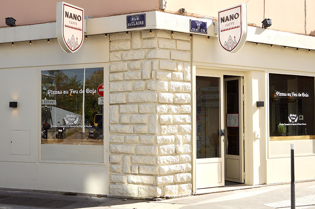 Notre pâte à pizza est faite avec du « Lievito Madre » et maturée minimum 72 heures. C’est une pizza dite Romaine mesurant 33cm croustillante… Tous les plats et produits cuisinés sont faits sur place. Nos produits proviennent directement d’Italie. Les propriétaires du Nano ont passé 20 ans à la direction opérationnelle et culinaire de la Maison prestigieuse Georges Blanc : 3 étoiles au Guide Michelin.